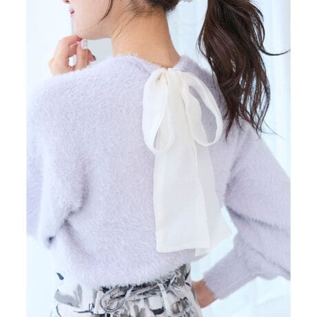 バックリボンがアクセントに♪さりげなくきらっと輝くラメシャギーニット