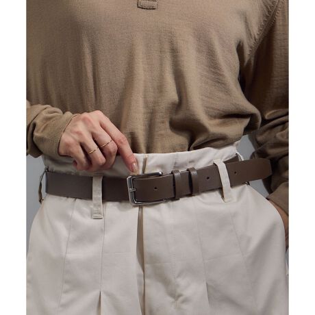 スクエア型のメタルバックルが程よいアクセントになり、ミニマルながらも存在感のある1本。