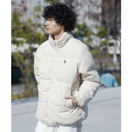 コーデュロイ素材のボリューム感ある中綿ジャケット。