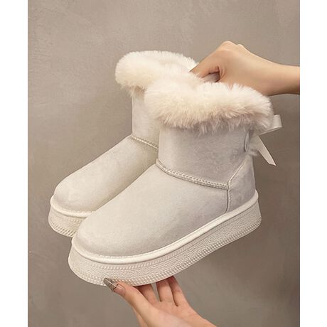 ふわふわのファーライニングと、バックリボンが特徴の冬の定番、ショート丈ムートンブーツ。ボリューム感のあるシルエットで見た目からもあったかさを感じられるアイテムです。フロント見たらシンプルでカジュアルですが、後ろから見たらガーリーで可愛い印象の欲張りなデザインのアイテムです。