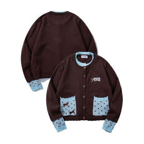 やわらかな色合いとガーリーなディテールが魅力の配色カーディガン。
