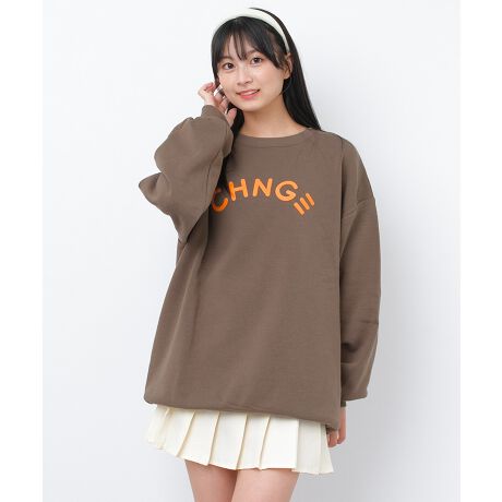 韓国風ロゴデザインのチュニック丈トレーナー。トレンドを抑えたオーバーサイズにプリーツスカートを合わせると韓国テイストに◎シンプルなデザインなので色柄ものから単色まで合わせやすいアイテムです。