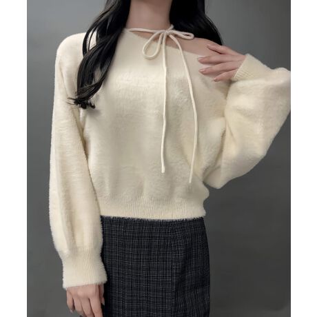 【紐取り外し可能】ワンショルチョーカーシャギーニットトップス