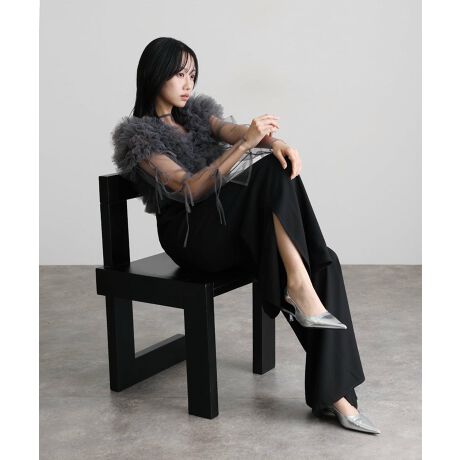 異素材のコントラストが美しく、印象的でモードなスタイルを演出します。
