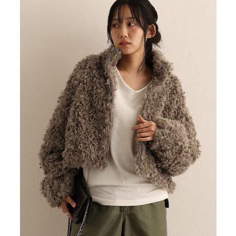 上品なカールが特徴のカルガンラム風フェイクファーを使用したコート。