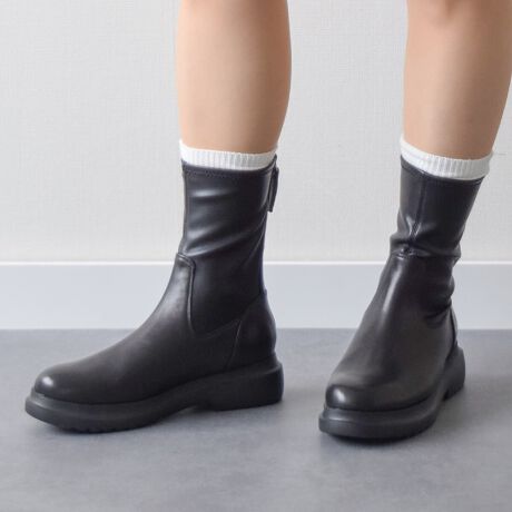 ラウンドトウのモールドソールストレッチショートブーツ。