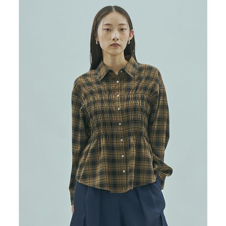 ・秋らしいチェック柄にシャーリングを効かせたデザイン