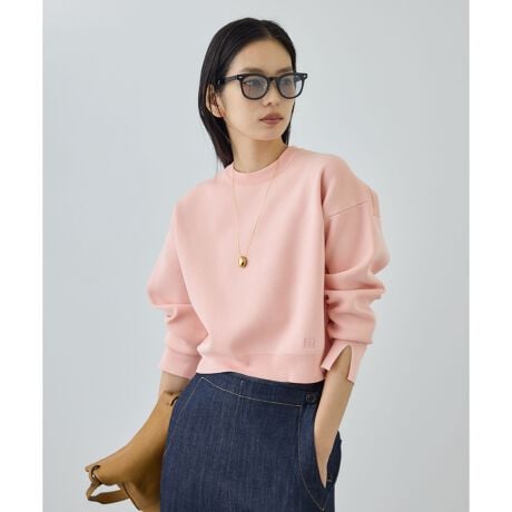 身幅と袖にほどよいゆとりを持たせてリラックス感を選出しながらも、着丈をコンパクトにすることで、スカートにもパンツにも合うデザインに仕上げました。左裾にあるロゴ刺繍もポイント。シンプルなシルエットの中に、大人のこなれ感と上品さを感じさせます。