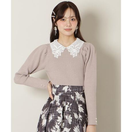 リボンレースカラータックスリーブニット