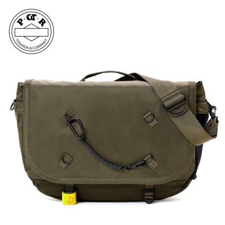 メッセンジャーバッグは大容量のメイン収納部と、内装に16inchのPCを収納できるクッション材入りのポケットを設けています。