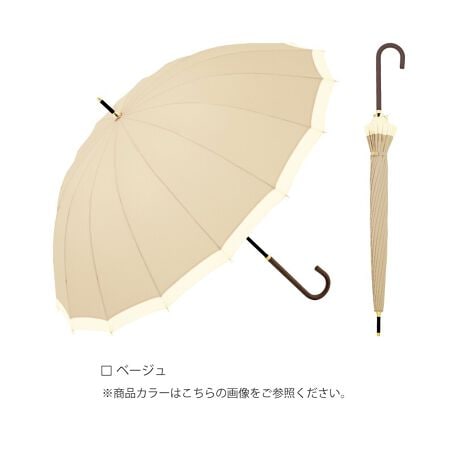 シンプルなデザインがどんなシーンにも合わせやすい。16本の軽くて丈夫なグラスファイバー骨を使用しているので風が強い日も安心。