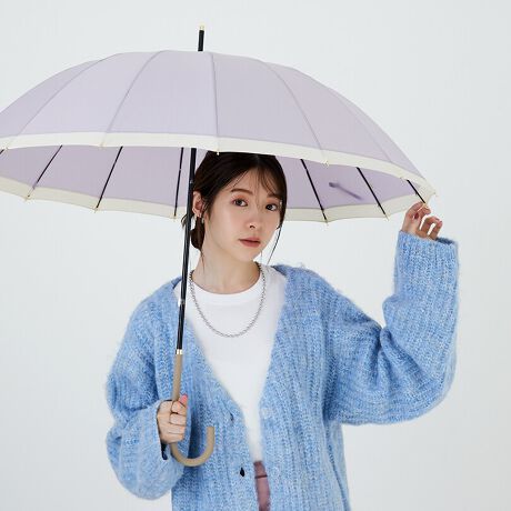 シンプルなデザインがどんなシーンにも合わせやすい。16本の軽くて丈夫なグラスファイバー骨を使用しているので風が強い日も安心。