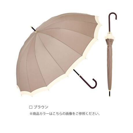 シンプルなデザインがどんなシーンにも合わせやすい。16本の軽くて丈夫なグラスファイバー骨を使用しているので風が強い日も安心。