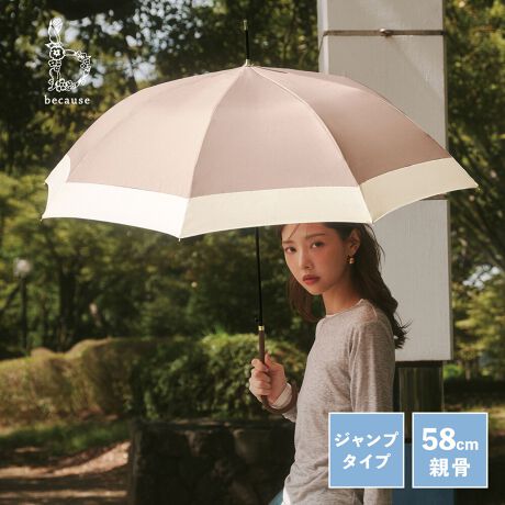 ワンプッシュで開くジャンプ式を採用。軽くて丈夫なグラスファイバー骨を使用した、風に強く壊れにくいモデル。バイカラーの優しい色合いがフレッシュな印象に。