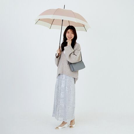 ワンプッシュで開くジャンプ式を採用。軽くて丈夫なグラスファイバー骨を使用した、風に強く壊れにくいモデル。バイカラーの優しい色合いがフレッシュな印象に。