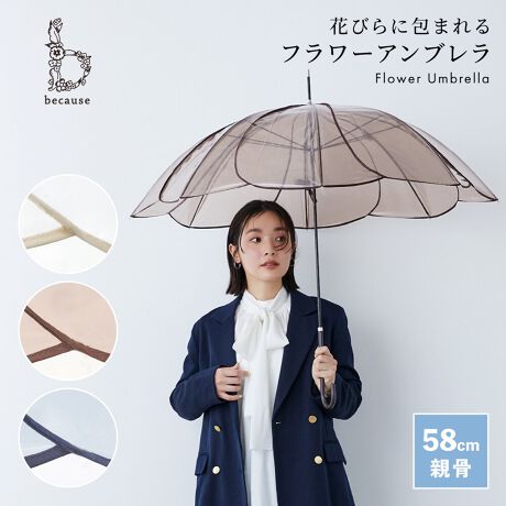 お花の形のビニール傘は注目度抜群。みんなの視線を独り占めして雨の日を楽しもう。