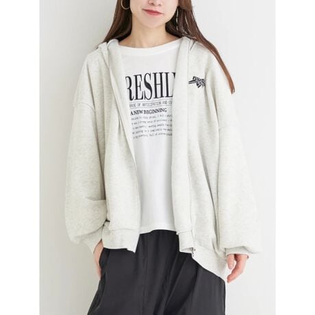 バックに施されたワッペン刺繍がクールなアクセントになった裏毛ジップパーカー