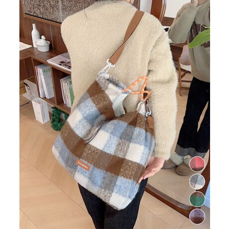 チェック柄デザインがコーデに映える、ウール調素材を使用した秋冬新作のショルダーバッグ。
