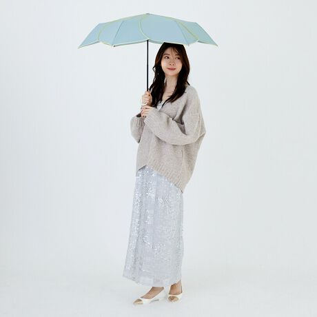 ○傘生地には防水撥水加工を施し、縫製には撥水糸を使用していますが、激しい雨や長時間のご使用では雨が染み込むことがございます。また飾り加工部分(刺繍、ステッチ、パイピング、テープ等)はデザインの特性上、完全な防水撥水加工が難しい場合があり雨が染みやすいのでご注意下さい。