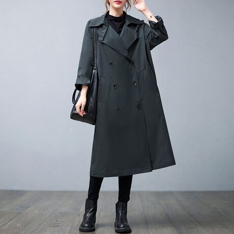 ダブルボタンとロング丈が上品な印象を与える、トレンチコートです。