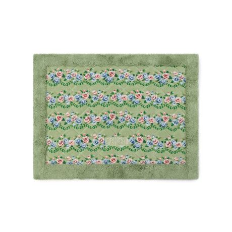 素足にも心地よくなじむ『ノスタルジックノート』のバスマットです。シュニール織とパイル地の組み合わせによる、ふんわりとした質感が魅力的。吸水性に優れているので、お風呂あがりも快適に。同柄のタオル類と揃えていただくと、より華やかな雰囲気をお楽しみいただけます。