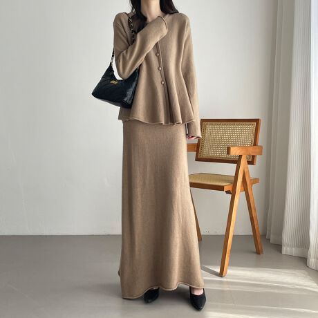 長袖トップスとロングスカートのセットアップです。