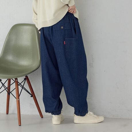 太ももにゆとりをたっぷり持たせ、裾にかけてすぼませたシルエットです。