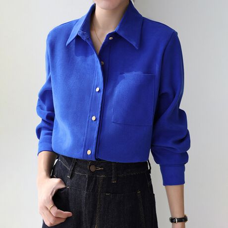 クラシックな襟元がきちんと感を演出し、顔まわりをすっきりと見せてくれます。