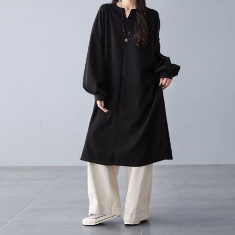 ギャザー入りの袖が印象的なチュニックワンピース。