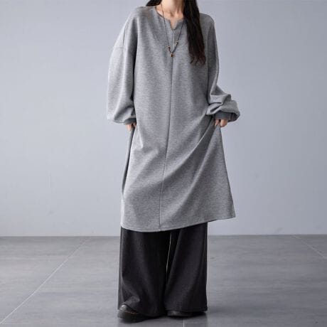 ギャザー入りの袖が印象的なチュニックワンピース。