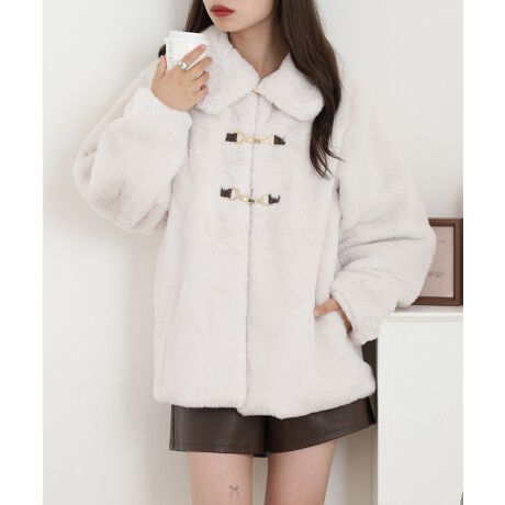 ラビット風 エコファー ビット付き ミドル丈 コート ファイクファー アウター