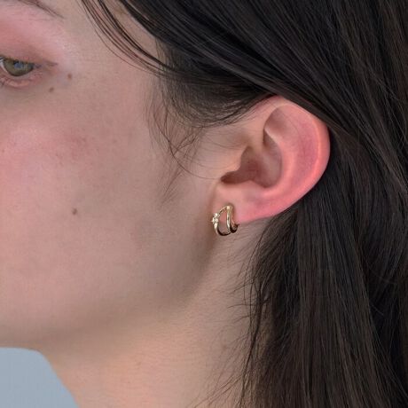 艶やかなメタルラインに、繊細なプチビジューをあしらったダブルハーフフープのイヤリング。