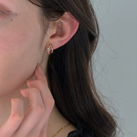 艶やかなメタルラインに、繊細なプチビジューをあしらったダブルハーフフープのイヤリング。