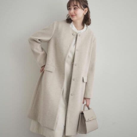 毎年定番のノーカラーロングコートが今年も登場
