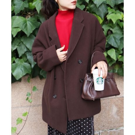 Pコート型をベースにメンズライクすぎず羽織りやすい1着。