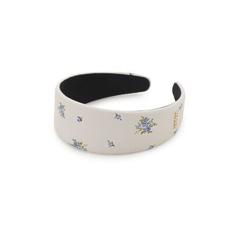 トレンドのヘアバンドのような見え感が可愛い、幅広めのカチューシャ。RWFO261024のワンピースと同柄を使用しており、セットでの着用もおすすめです。サイドにあしらわれたさりげないロゴカシメが、上品なアクセントに。シンプルなヘアアレンジも一気に華やぐ、可愛さ引き立つアクセントアイテム。