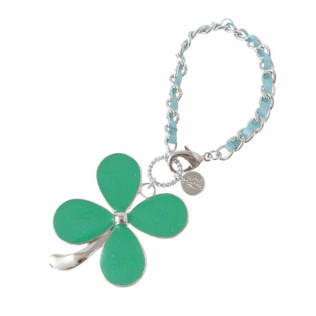 [型番:BPSGV21040]キラキラとラメ感のあるBIGクローバーのモチーフが印象的なデザインチャーム。普段使いのバッグにプラスするだけで幸せ気分を上げてくれるひと品です。簡単に付け替え可能なチェーンはリボンを編み込んだフェミニンさお洒落なポイント。お揃いでプレゼントしても喜ばれるおすすめのアイテムです。
