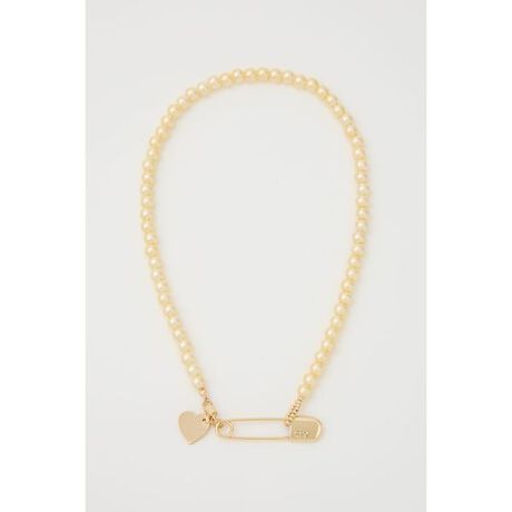 【F/PEARL PINS N/C】■POINT:安全ピンモチーフが目を惹くフェイクパールネックレス。■DETAIL:首に沿った短めのネックレスの作りになっており、フロントには小さなハートモチーフとオリジナルで型をおこした安全ピンが付けるだけで目を惹くデザイン。また簡単に着脱出来るマグネット仕様なのも嬉しいポイントです。■STYLING:シンプルなスタイルにプラスするだけでスタイリングのポイントになるアイテム。今期はプリントTシャツなどカジュアルなスタイルにあえてプラスするのもおすすめです。■FABRIC/MATERIAL:アクリル樹脂、真鍮、鉄、ABS樹脂使用。・この商品は磁気を発する付属を使用しています。以下の点にご注意下さい。◆腕時計、パソコン、携帯電話、カード類とは十分に離してお取り扱い下さい。◆ペースメーカーなど電子医療機器をご使用の方は着用(使用)をお避け下さい。・身体に異常を感じた場合は速やかにご使用を中止下さい。・体質によってはかぶれ等を生じる場合がありますので、皮膚に異常を感じた時は、ご使用をお止めいただき、専門医にご相談下さい。・水、汗、消毒液などに触れたり、皮脂及び汚れの蓄積により変色や変質する場合があります。定期的にふき取りのメンテナンスをお願いします。消毒液が製品に直接かかる事が無いようご注意下さい。[注意事項]※画像の商品はサンプルです。実際の商品と仕様、加工が若干異なる場合があります。※画像の商品は光の照射や角度、お使いのモニター環境により、実物と色味が異なる場合がございます。※着用、お取り扱いの際は、アテンションタグをご確認ください。※一部予約商品につきましては生産上の都合によりお届け予定日や店頭発売と前後する場合もございます。※追加生産商品は、一部の店舗、通販で販売中の場合がございます。予めご了承下さい。