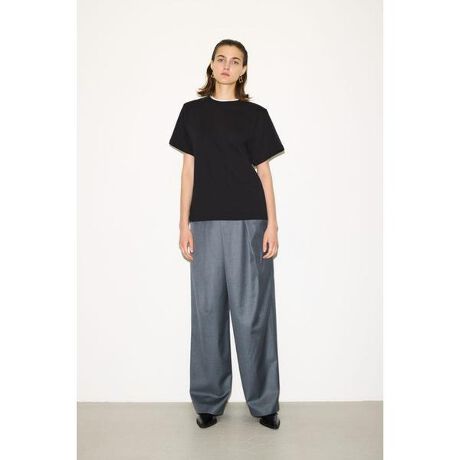THROW by SLY【ASYMMETRY TUCK SLACKS】■POINT:アシンメトリータックデザインがポイントのスラックス。■DETAIL:フロントに施された斜めのアシンメトリータックがインパクトのあるデザイン。程よい太さのテーパードシルエットでマニッシュな印象でありながらウエストゴムでリラックス感もある綺麗めボトム。穿くだけで大人モードな印象へ導きます。■STYLING:コンパクトなトップスはもちろん、ざっくりしたニットやスウェットにも幅広く合わせやすいアイテムです。■FABRIC/MATERIAL:程よいハリ感と落ち感を兼ね備えたスーツ地を使用。■透け感:なし■光沢感:なし■伸縮性:なし■裏 地:あり[注意事項]※画像の商品はサンプルです。実際の商品と仕様、加工が若干異なる場合があります。※画像の商品は光の照射や角度、お使いのモニター環境により、実物と色味が異なる場合がございます。※着用、お取り扱いの際は、アテンションタグをご確認ください。※一部予約商品につきましては生産上の都合によりお届け予定日や店頭発売と前後する場合もございます。※追加生産商品は、一部の店舗、通販で販売中の場合がございます。予めご了承下さい。