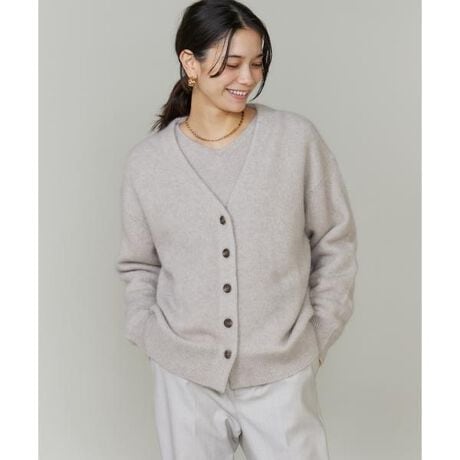 ■デザイン柔らかい毛足がポイントで一枚でもコーディネートのアクセントになるVネックカーディガン。ゆったりとしたサイズ感と、ほどよいVネックの開きが抜け感を演出してくれます。上質な素材感を際立たせる為、前立て部分を見返し使いにして出来るだけシンプルなデザインにしました。袖口はリブ使いにしているので、袖を捲し上げてもしっかりホールドできます。サラッと羽織れるので、メインアイテムとしてコーディネートを楽しんでいただけるアイテムです。■素材非常に細く柔らかでフワフワとした質感の高級原料ラクーンを贅沢にブレンドしたファーニット素材。繊維の間に空気を含むため保温性に優れ、適度な光沢感と長い毛足が特徴で、その繊細な毛足、ソフトなとタッチと軽やかな着心地は他の獣毛とは違う魅力があります。ボリューム感があり耐久性に優れているため、長く着用をお楽しみいただけます。■サンプル撮影商品画像の商品はサンプルです。実際の商品とはサイズや色味、素材、デザイン等の仕様が若干変更になる場合がございます。■カラーについては、可能な限り実際の商品に近いカラーで撮影をおこなっておりますが、照明の関係により実際の製品とは色味が違って見える場合があります。またパソコン・スマートフォンなどの環境により、若干製品と画像のカラーが異なる場合もございます。現物と画像のカラー差異については返品理由となりませんので、予めご了承ください。■サイズ表記はあくまで目安となります。
