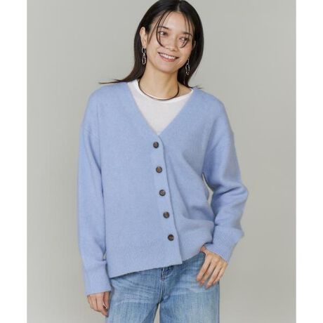 ■デザイン柔らかい毛足がポイントで一枚でもコーディネートのアクセントになるVネックカーディガン。ゆったりとしたサイズ感と、ほどよいVネックの開きが抜け感を演出してくれます。上質な素材感を際立たせる為、前立て部分を見返し使いにして出来るだけシンプルなデザインにしました。袖口はリブ使いにしているので、袖を捲し上げてもしっかりホールドできます。サラッと羽織れるので、メインアイテムとしてコーディネートを楽しんでいただけるアイテムです。■素材非常に細く柔らかでフワフワとした質感の高級原料ラクーンを贅沢にブレンドしたファーニット素材。繊維の間に空気を含むため保温性に優れ、適度な光沢感と長い毛足が特徴で、その繊細な毛足、ソフトなとタッチと軽やかな着心地は他の獣毛とは違う魅力があります。ボリューム感があり耐久性に優れているため、長く着用をお楽しみいただけます。■サンプル撮影商品画像の商品はサンプルです。実際の商品とはサイズや色味、素材、デザイン等の仕様が若干変更になる場合がございます。■カラーについては、可能な限り実際の商品に近いカラーで撮影をおこなっておりますが、照明の関係により実際の製品とは色味が違って見える場合があります。またパソコン・スマートフォンなどの環境により、若干製品と画像のカラーが異なる場合もございます。現物と画像のカラー差異については返品理由となりませんので、予めご了承ください。■サイズ表記はあくまで目安となります。