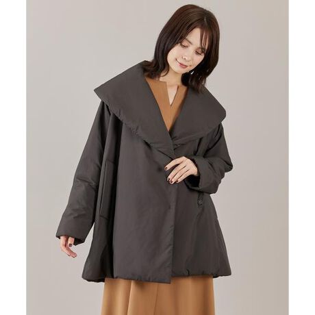 ■デザイン大きめのショールカラーが印象的な中綿コート。袖や肩まわりがスッキリと見えるようにパターンや中わたの分量感にこだわりました。サイドのスピンドルコードで裾を絞り、シルエットに丸みを持たせることも可能です。撥水機能を備え、急な天候の変化にも対応できます。■素材素材はリモンタイースト(LIMONTA EAST)のリサイクルポリエステルの薄手タフタ。軽く、滑らかなタッチでマットなツヤ感が魅力の素材です。リモンタイーストはイタリアの上質な生地を作ることで知られている老舗の合繊生地メーカーのリモンタ社が手掛ける中国ラインのブランドです。この素材は下記の機能を持つ多機能素材です。・防風性:生地への特殊加工により、風を通しにくい機能があります。・透湿性:水滴は通過しないが、水蒸気の分子を通すため衣服内の快適を保ちます。・ポケットあり・裏地あり■サンプル撮影商品画像の商品はサンプルです。実際の商品とはサイズや色味、素材、デザイン等の仕様が若干変更になる場合がございます。■カラーについては、可能な限り実際の商品に近いカラーで撮影をおこなっておりますが、照明の関係により実際の製品とは色味が違って見える場合があります。またパソコン・スマートフォンなどの環境により、若干製品と画像のカラーが異なる場合もございます。現物と画像のカラー差異については返品理由となりませんので、予めご了承ください。■サイズ表記はあくまで目安となります。