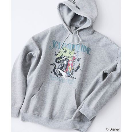 「ディズニーヴィランズ」のプリントに、フードのロゴ刺繍がアクセントになっている、オリジナリティ溢れるデザインのオーバーサイズパーカー。