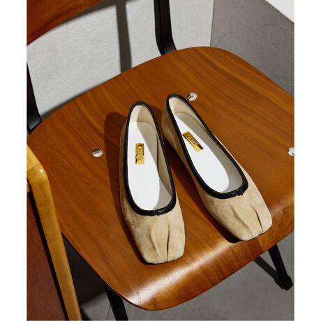 トウ先に1足1足手作業でプリーツを施したフラットシューズ。