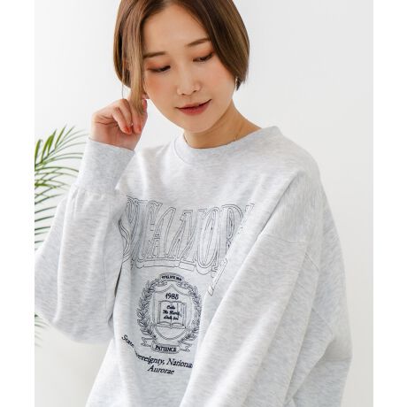 ハーフジップ、パーカー、ニット/セーター、ベスト、カーディガン、ロンTと共に、今期の人気アイテムとなるカレッジモチーフ刺繍スウェットトレーナー。