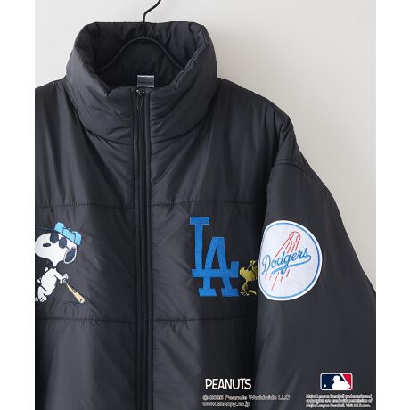 今も昔も多くの人に愛されているPEANUTSと、メジャーリーグベースボール(MLB)とのコラボレーションアートを使用したオリジナルデザインのナイロンパファージャケットです。