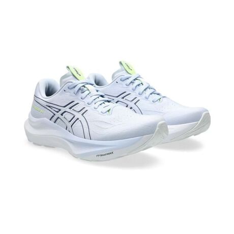 GT-2000 14は、エネルギッシュな走りと安定感のあるサポートを追求したランニングシューズです。接地面を広くとったソール形状により、ねじれや内側への倒れこみを抑制しながら、適切なかかとポジションへ促し、よりスムーズな次の一歩に繋げるサポート構造「3Dガイダンスシステム」を採用。アウターソールの中央にはトランポリンから着想を得たクッションパーツを配置し、より反発力のある蹴り出しを提供。ミッドソールにはFF BLAST MAXクッションを採用。蹴り出し時には反発力を、着地時には雲の上を歩いているようなソフトな履き心地を提供します。