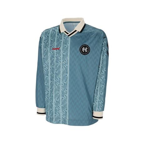 [型番:0321HAG303103]hummel FOOTBALL CULTUREを表現するライフスタイルカテゴリー。<br>1986年デンマーク代表のユニフォームを連想させる左右非対称のデザインに「H.FC」のタイポロゴを施したルーズシルエットのゲームシャツ。<br>シェブロン柄のジャガード素材やリブ衿を採用した、H.FCを象徴するアイテム。吸汗速乾。メーカー品番:HAG3031-233