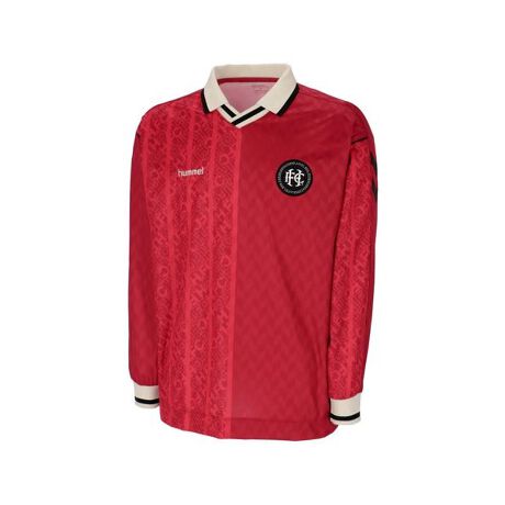 [型番:0321HAG303103]hummel FOOTBALL CULTUREを表現するライフスタイルカテゴリー。<br>1986年デンマーク代表のユニフォームを連想させる左右非対称のデザインに「H.FC」のタイポロゴを施したルーズシルエットのゲームシャツ。<br>シェブロン柄のジャガード素材やリブ衿を採用した、H.FCを象徴するアイテム。吸汗速乾。メーカー品番:HAG3031-233