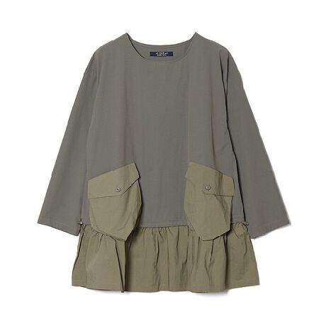 切替部分には大きくタックを入れたポケットを配置し、シンプルになりすぎない印象的なデザインに。